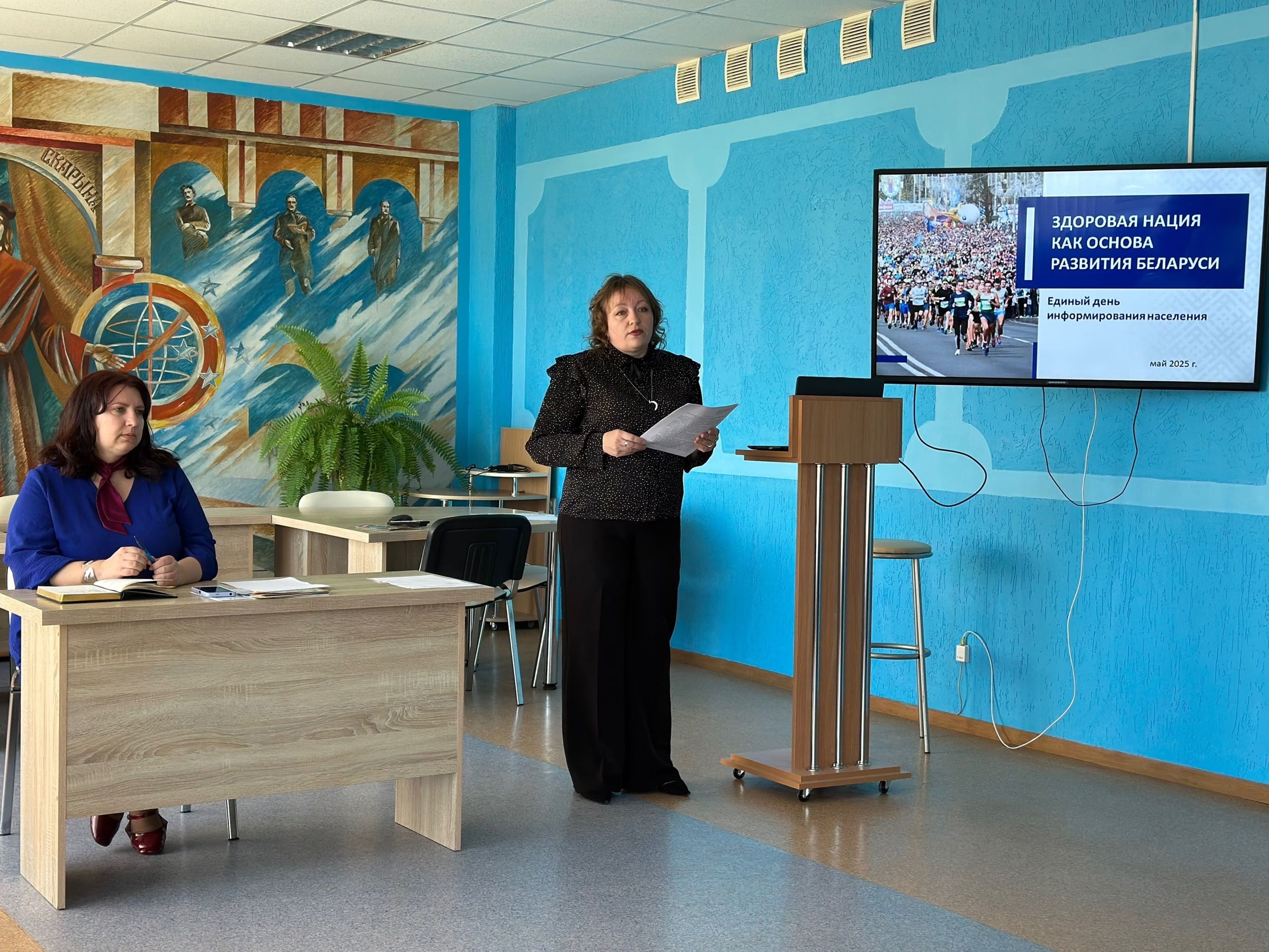 21 мая в Ляховичской центральной районной библиотеке им.Я.Купалы прошел единый день информирования «Здоровая нация как основа развития Беларуси» для работников библиотечной системы. В ходе собрания обсуждались вопросы здоровья белорусского населения, работы учреждений здравоохранения, достижения в области медицины, развития туризма, оздоровительного отдыха. Подробно рассмотрели острый вопрос экстремизма и терроризма. Далее остановились на актуальной теме – временное трудоустройство молодежи. Детально разобрали каждый аспект в данной области. Вся информация наглядно была предоставлена в виде презентации со статистикой по каждой теме.